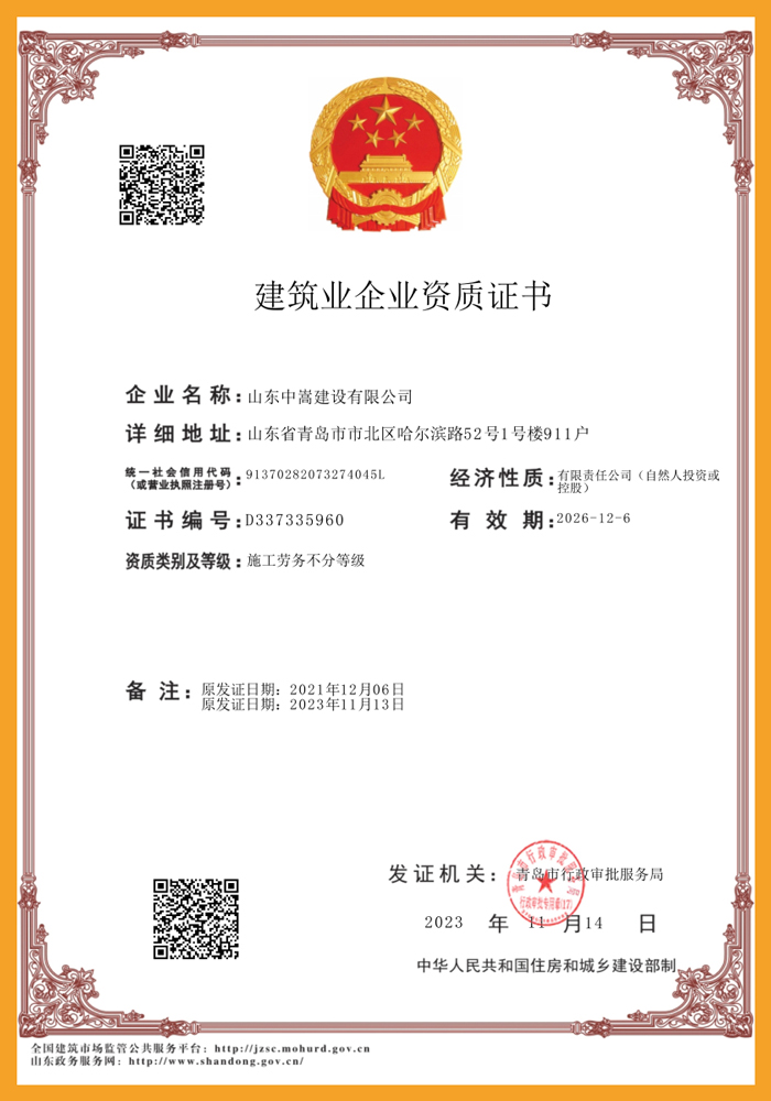 • 建筑業企業資質證書1
